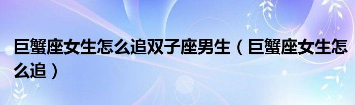 关于巨蟹座女生怎么追双子座男生,巨蟹座女生怎么追这个很多人还不知道,今天菲菲来为大家解答以上的问题,现在让我们一起来看看吧!