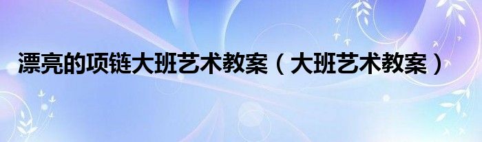 关于漂亮的项链大班艺术教案,大班艺术教案这个很多人还不知道,今天菲菲来为大家解答以上的问题,现在让我们一起来看看吧!