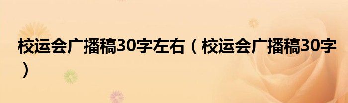 关于校运会广播稿30字左右,校运会广播稿30字这个很多人还不知道,今天菲菲来为大家解答以上的问题,现在让我们一起来看看吧!