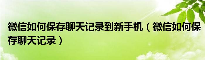 微信如何保存聊天记录到新手机(微信如何保存聊天记录)