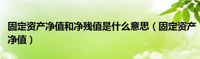 固定资产净值和净残值是什么意思(固定资产净值)