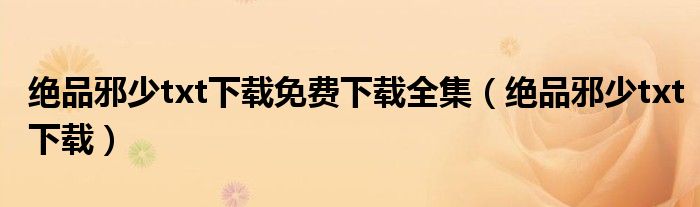 关于绝品邪少txt下载免费下载全集,绝品邪少txt下载这个很多人还不知道,今天菲菲来为大家解答以上的问题,现在让我们一起来看看吧!