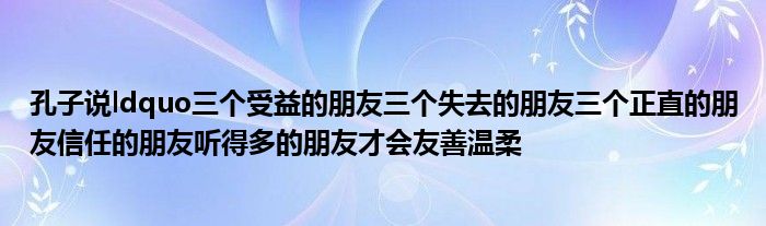 关于孔子说ldquo三个受益的朋友三个失去的朋友三个正直的朋友信任的朋友听得多的朋友才会友善温柔这个很多人还不知道,今天菲菲来为大家解答以上的问题,现在让我们一起来看看吧!