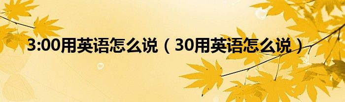 关于3:00用英语怎么说,30用英语怎么说这个很多人还不知道,今天菲菲来为大家解答以上的问题,现在让我们一起来看看吧!