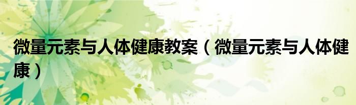 关于微量元素与人体健康教案,微量元素与人体健康这个很多人还不知道,今天菲菲来为大家解答以上的问题,现在让我们一起来看看吧!