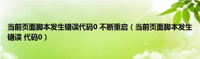 关于当前页面脚本发生错误代码0 不断重启,当前页面脚本发生错误 代码0这个很多人还不知道,今天菲菲来为大家解答以上的问题,现在让我们一起来看看吧!