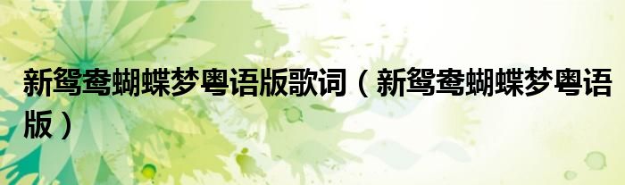 关于新鸳鸯蝴蝶梦粤语版歌词,新鸳鸯蝴蝶梦粤语版这个很多人还不知道,今天菲菲来为大家解答以上的问题,现在让我们一起来看看吧!