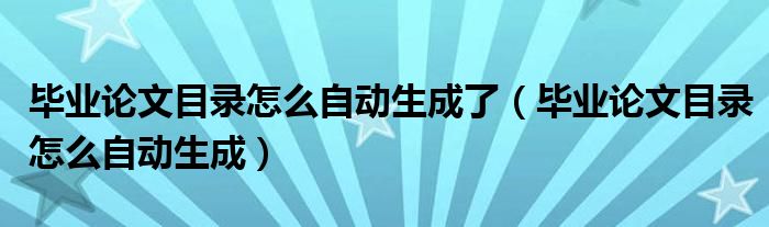 关于毕业论文目录怎么自动生成了,毕业论文目录怎么自动生成这个很多人还不知道,今天菲菲来为大家解答以上的问题,现在让我们一起来看看吧!