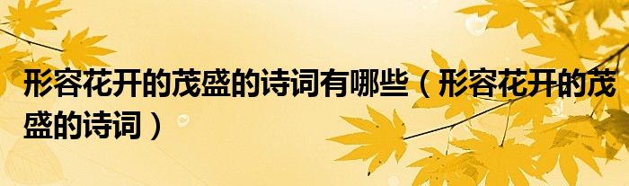 形容花开的茂盛的诗词有哪些(形容花开的茂盛的诗词)
