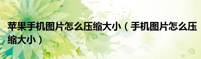苹果手机图片怎么压缩大小(手机图片怎么压缩大小)