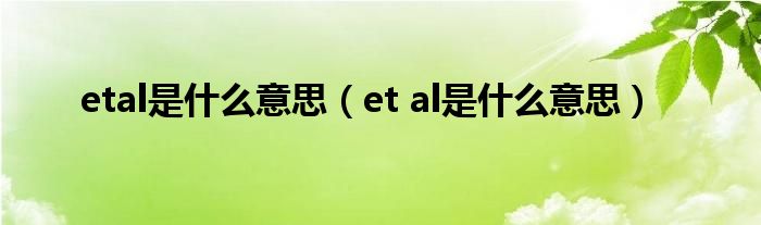 关于etal是什么意思,et al是什么意思这个很多人还不知道,今天菲菲来为大家解答以上的问题,现在让我们一起来看看吧!