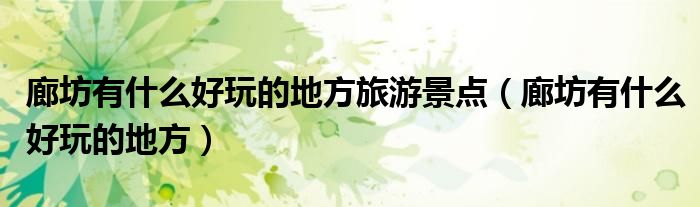 关于廊坊有什么好玩的地方旅游景点,廊坊有什么好玩的地方这个很多人还不知道,今天菲菲来为大家解答以上的问题,现在让我们一起来看看吧!