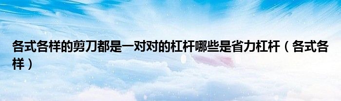 最佳答案关于各式各样的剪刀都是一对对的杠杆哪些是省力杠杆,各式各样这个很多人还不知道,今天菲菲来为大家解答以上的问题,现在让我们一起来看看吧!1、商场的柜台里有各式各样的商品。本文到此分享完毕,希望对大家有所帮助。
