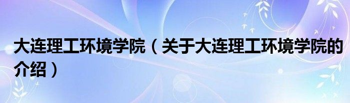 大连理工环境学院(关于大连理工环境学院的介绍)