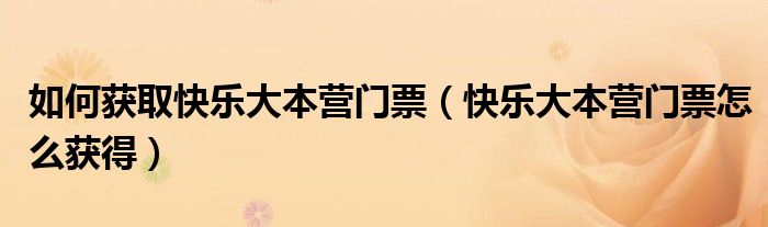 关于如何获取快乐大本营门票,快乐大本营门票怎么获得这个很多人还不知道,今天菲菲来为大家解答以上的问题,现在让我们一起来看看吧!