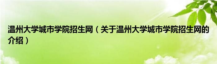 大家好,今天小乐来为大家解答以上的问题。温州大学城市学院招生网,关于温州大学城市学院招生网的介绍很多人还不知道,现在让我们一起来看看吧!