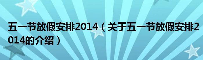 大家好,今天小乐来为大家解答以上的问题。五一节放假安排2014,关于五一节放假安排2014的介绍很多人还不知道,现在让我们一起来看看吧!