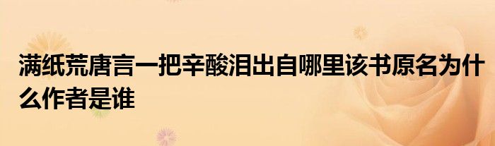 关于满纸荒唐言一把辛酸泪出自哪里该书原名为什么作者是谁这个很多人还不知道,今天菲菲来为大家解答以上的问题,现在让我们一起来看看吧!