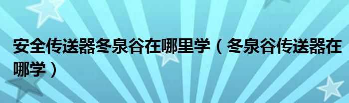 安全传送器冬泉谷在哪里学(冬泉谷传送器在哪学)