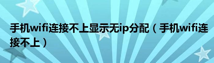 手机wifi连接不上显示无ip分配(手机wifi连接不上)