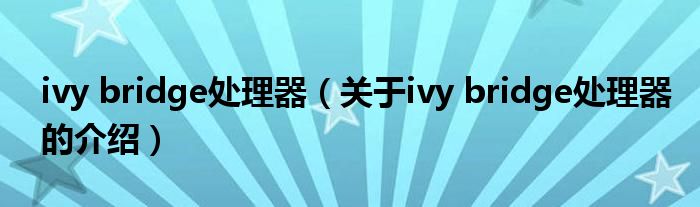 ivy bridge处理器(关于ivy bridge处理器的介绍)