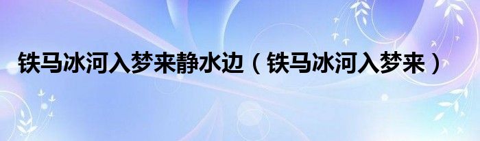 关于铁马冰河入梦来静水边,铁马冰河入梦来这个很多人还不知道,今天菲菲来为大家解答以上的问题,现在让我们一起来看看吧!