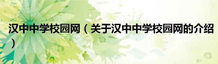 大家好,今天小乐来为大家解答以上的问题。汉中中学校园网,关于汉中中学校园网的介绍很多人还不知道,现在让我们一起来看看吧!