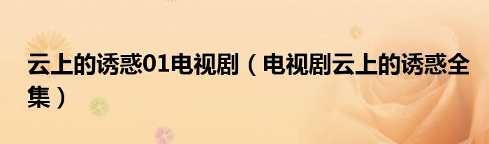 关于云上的诱惑01电视剧,电视剧云上的诱惑全集这个很多人还不知道,今天菲菲来为大家解答以上的问题,现在让我们一起来看看吧!