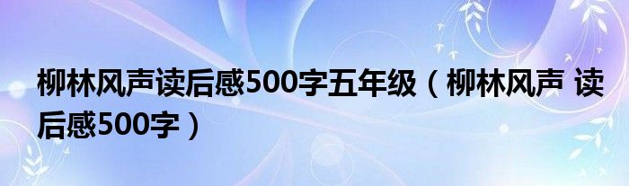 关于柳林风声读后感500字五年级,柳林风声 读后感500字这个很多人还不知道,今天菲菲来为大家解答以上的问题,现在让我们一起来看看吧!