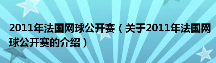 大家好,今天小乐来为大家解答以上的问题。2011年法国网球公开赛,关于2011年法国网球公开赛的介绍很多人还不知道,现在让我们一起来看看吧!