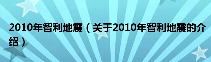 大家好,今天小乐来为大家解答以上的问题。2010年智利地震,关于2010年智利地震的介绍很多人还不知道,现在让我们一起来看看吧!