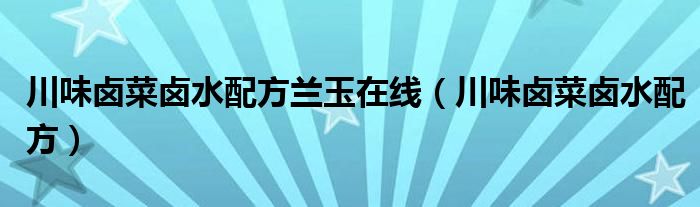 关于川味卤菜卤水配方兰玉在线,川味卤菜卤水配方这个很多人还不知道,今天菲菲来为大家解答以上的问题,现在让我们一起来看看吧!