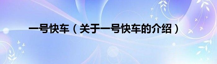 大家好,今天小乐来为大家解答以上的问题。一号快车,关于一号快车的介绍很多人还不知道,现在让我们一起来看看吧!