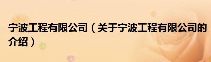 大家好,今天小乐来为大家解答以上的问题。宁波工程有限公司,关于宁波工程有限公司的介绍很多人还不知道,现在让我们一起来看看吧!
