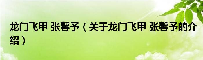 龙门飞甲 张馨予(关于龙门飞甲 张馨予的介绍)