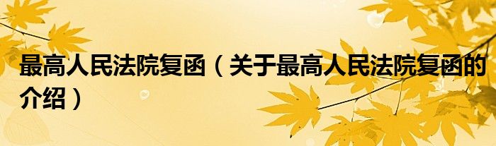最高人民法院复函(关于最高人民法院复函的介绍)