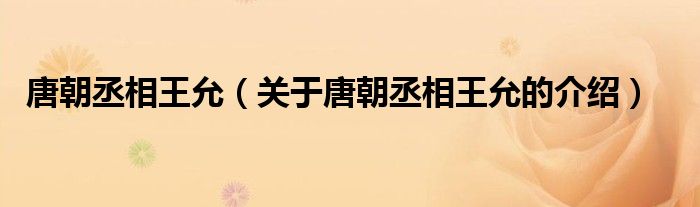 唐朝丞相王允(关于唐朝丞相王允的介绍)