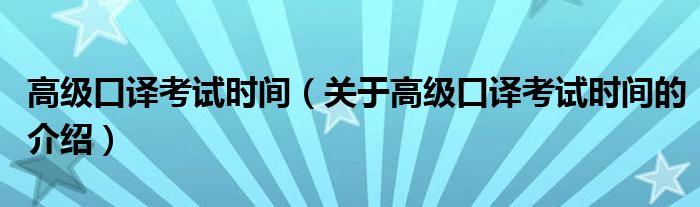 1、英语高级口译考试,是英语口译岗位资格证书考试项目中的高层次项目,具有大学英语六级和同等英语能力水平的考生可以报考。