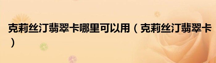 关于克莉丝汀翡翠卡哪里可以用,克莉丝汀翡翠卡这个很多人还不知道,今天菲菲来为大家解答以上的问题,现在让我们一起来看看吧!