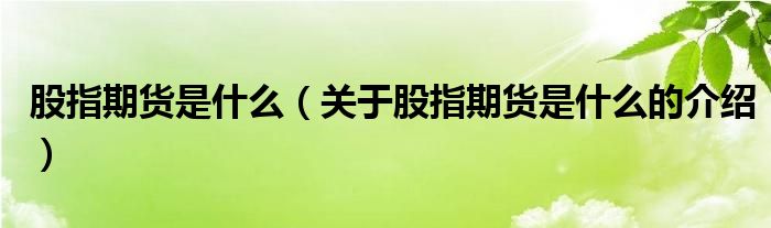 大家好,小都来为大家解答以上的问题。股指期货是什么,关于股指期货是什么的介绍很多人还不知道,现在让我们一起来看看吧!