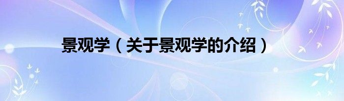 大家好,小都来为大家解答以上的问题。景观学,关于景观学的介绍很多人还不知道,现在让我们一起来看看吧!