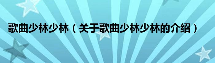 大家好,小都来为大家解答以上的问题。歌曲少林少林,关于歌曲少林少林的介绍很多人还不知道,现在让我们一起来看看吧!
