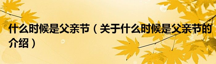 大家好,小都来为大家解答以上的问题。什么时候是父亲节,关于什么时候是父亲节的介绍很多人还不知道,现在让我们一起来看看吧!