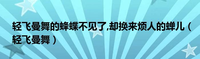 大家好,小晋来为大家解答以下问题,关于轻飞曼舞的蜂蝶不见了,却换来烦人的蝉儿,轻飞曼舞很多人还不知道,今天让我们一起来看看吧!