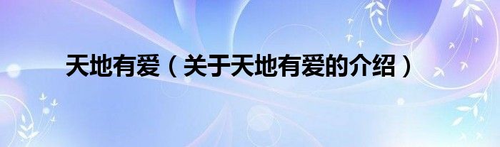 大家好,小都来为大家解答以上的问题。天地有爱,关于天地有爱的介绍很多人还不知道,现在让我们一起来看看吧!