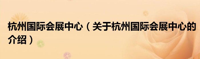 大家好,小都来为大家解答以上的问题。杭州国际会展中心,关于杭州国际会展中心的介绍很多人还不知道,现在让我们一起来看看吧!