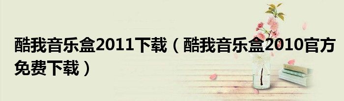 大家好,雨雨来为大家解答以上问题,酷我音乐盒2011下载,酷我音乐盒2010官方免费下载很多人还不知道,现在让我们一起来看看吧!