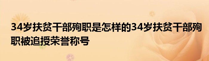 大家好.我是互联百科的羽儿,现在为大家解决以上34岁扶贫干部殉职是怎样的34岁扶贫干部殉职被追授荣誉称号的问题.