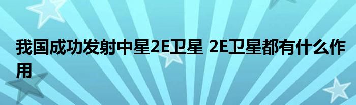 大家好.我是互联百科的羽儿,现在为大家解决以上我国成功发射中星2E卫星 2E卫星都有什么作用的问题.