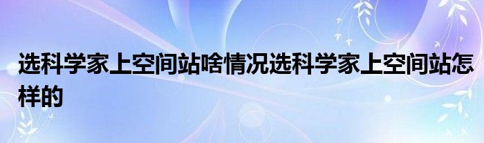 大家好.我是互联百科的羽儿,现在为大家解决以上选科学家上空间站啥情况选科学家上空间站怎样的的问题.